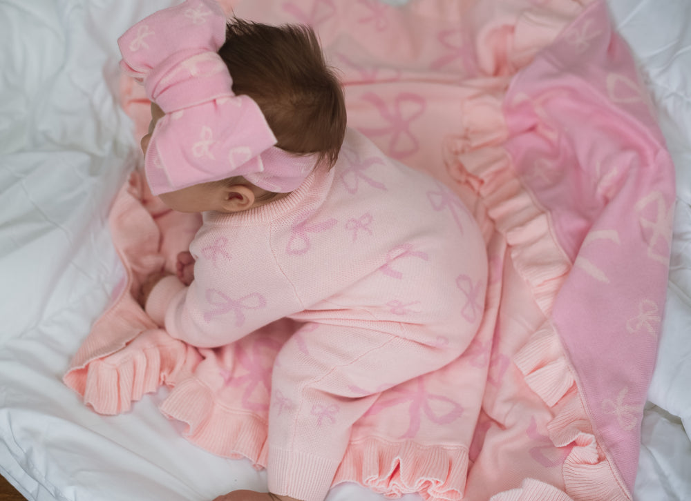 Blush Bows Reversible Knit Blanket