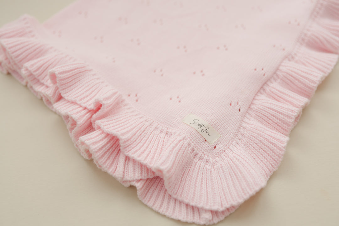 Frilled Pointelle Blanket - Petal Pink