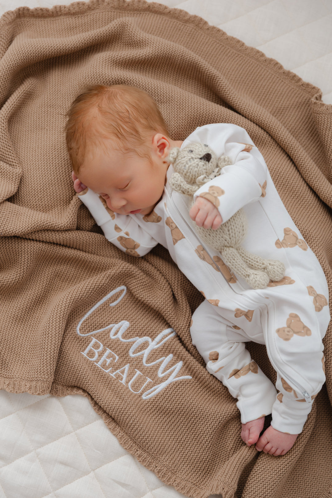Scalloped Edge Personalized Baby Knit Blanket - Brown - PRE ORDER