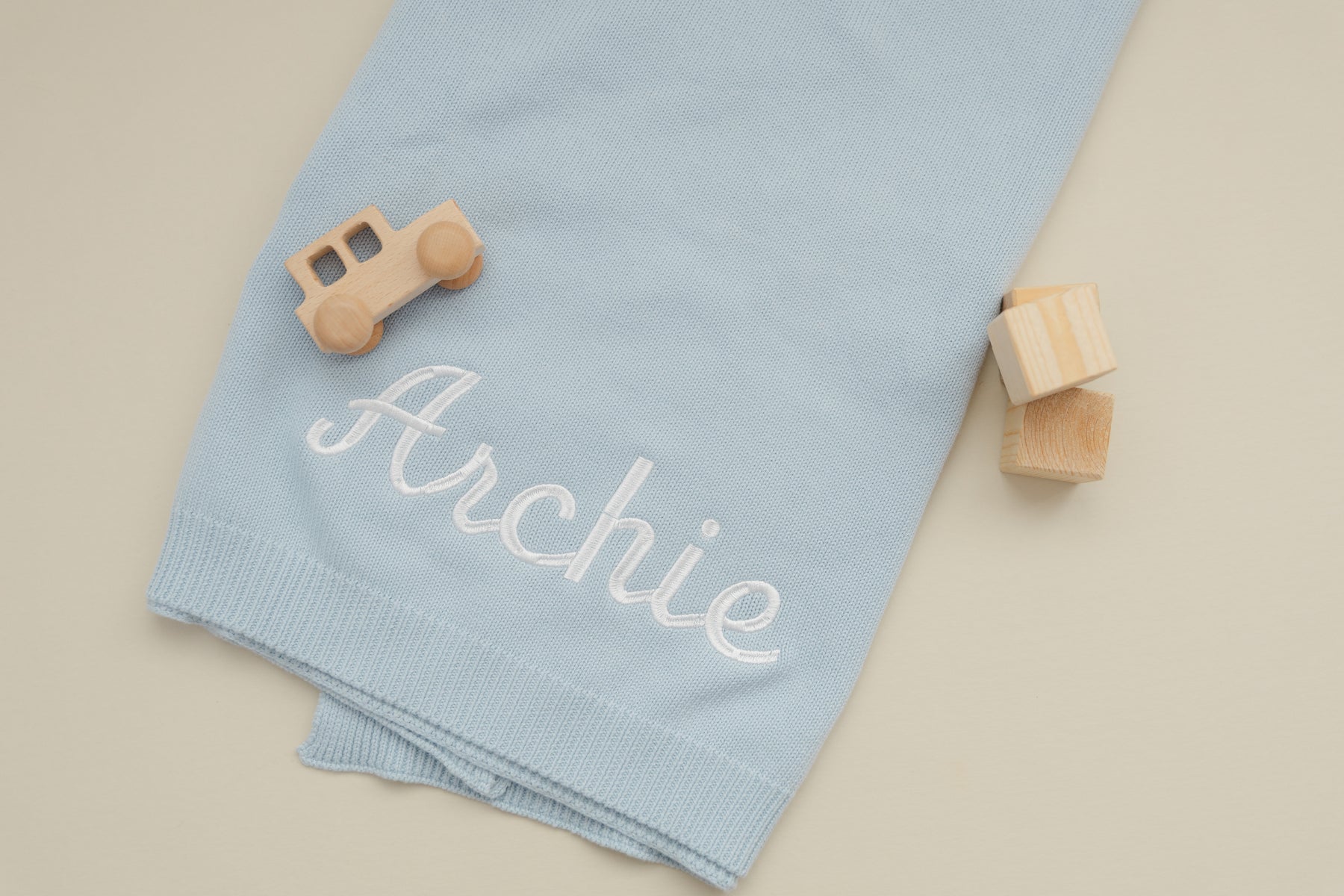Flat Edge Personalized Baby Blanket - Baby Blue