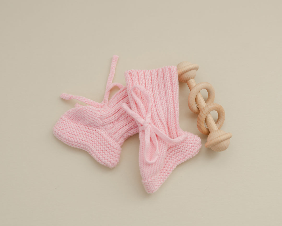 Knit Booties in Soft Rose
